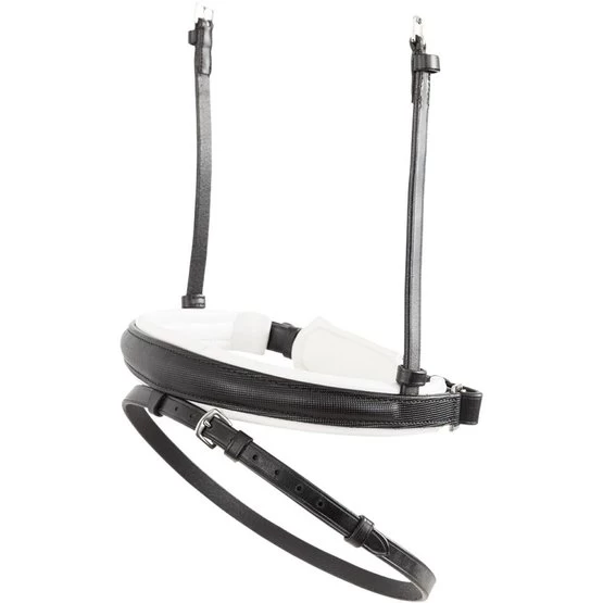 Dieser breite, rund hochgezogene Kurbel-Nasenriemen ist weich gepolstert und hat einen weichen Kieferschutz, um Ihrem Pferd optimalen Komfort zu bieten. Es ist aus hochwertigem Leder gefertigt, das lange schön bleibt. Die Außenseite hat ein subtiles quadratisches Muster für einen stilvollen Look!