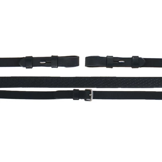 Diese Zügel sind mit Gummipunkten ausgestattet, die einen weicheren, aber effektiven Griff gewährleisten. Ausgestattet mit Edelstahlbeschlägen.