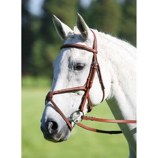 Dieses auffällige Zaumzeug aus pflanzlich gegerbtem Leder verfügt über attraktive Nähte an hochgezogenem und gefüttertem Stirnband, Nasenband und Zügeln. Komfortables Futter, ergonomisch geformte Kopfbedeckung für weniger Druck bei der Abstimmung, Gummizügel, Hakenbolzen und Edelstahlbeschläge. Avignon Lederarbeiten sind pflanzlich gegerbt für ein geschmeidiges, attraktives Finish