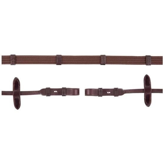 Gurtzügel mit rundgenähten Enden, Lederstegen und Martingalschieber, Zaumhaken und einer runden Schnalle. 19 mm.