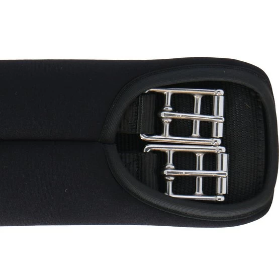 Dieser gerade Dressurgurt aus der Evolution-Linie besteht aus weichem Memory-Neopren und ist an der Innenseite mit einem Nylonband verstärkt. Der Sattelgurt hat beidseitig 3-lagige Elastikeinsätze und robuste Rollschnallen mit luxuriösem Aussehen.