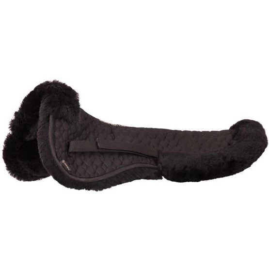 Natürliches Lammfell mit Rand, Oberseite aus gesteppter Baumwolle.