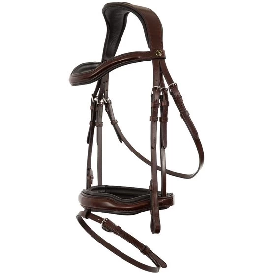 Das Genickstück „Anatomic Fit” (art. 189048) ist anatomisch geformt und sehr weich unterlegt. Dies ermöglicht einen guten Schnitt, eine bessere Druckverteilung auf dem Kopf des Pferdes und sehr viel Komfort. Der anatomische, kombinierte Nasenriemen ist 30 mm breit in der Mitte und 20 mm breit an den Seiten. Auch der Nasenriemen enthält ein weiches Padding für optimalen Komfort. Der Sperriem ist völlig abnehmbar dank der T-förmigen, ausnehmbaren Sperriemenschlaufe.