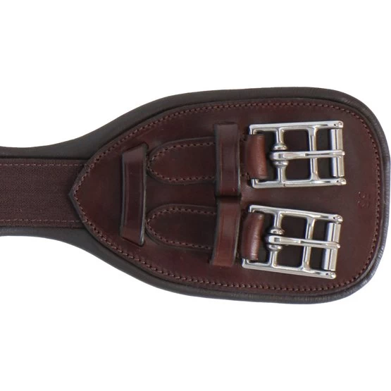 Anatomischer Ledergurt für Dressur und Gelände. Feste Schnallen und zentraler Ring aus Stahl. Futter aus Kalbsleder.