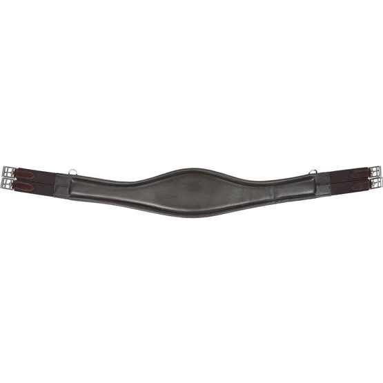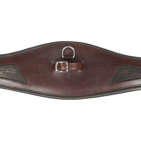 Anatomischer Stollenschutzgurt aus Leder. Mittel- und Seitenringe. Stahlschnallen mit Gummizug. Futter aus Kalbsleder.