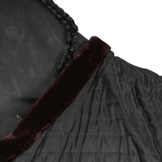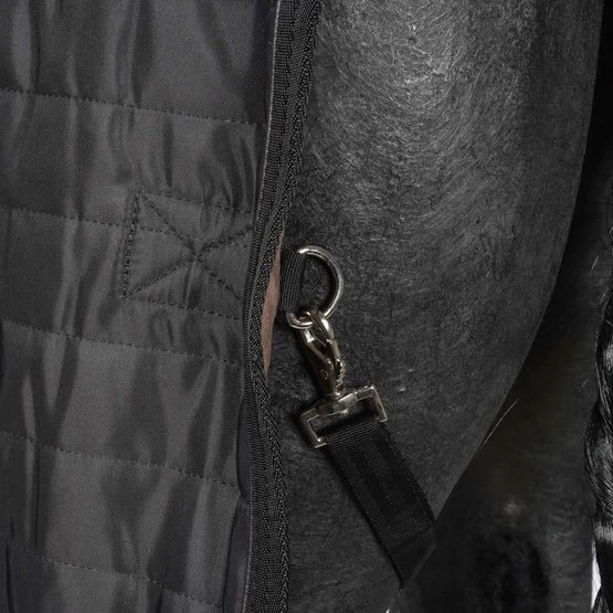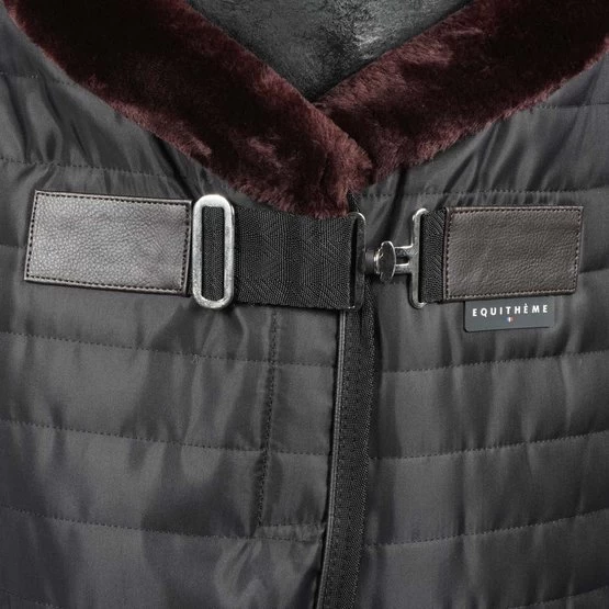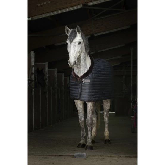 Stalldecke mit synthetischem Lammfellhals. Hochwertiges synthetisches Lammfellfutter mit großzügigen Steppnähten für guten Halt. Mit Kreuzbegurtung und Schweifriemen. Doppelt verstellbare Herren-/Damenschnallen mit Klettverschluss auf der Brust. Ideal für den Stall, vereint diese Decke Komfort und Robustheit. Zusammensetzung: 100 % Polyester.