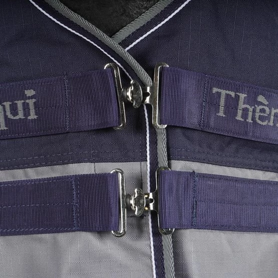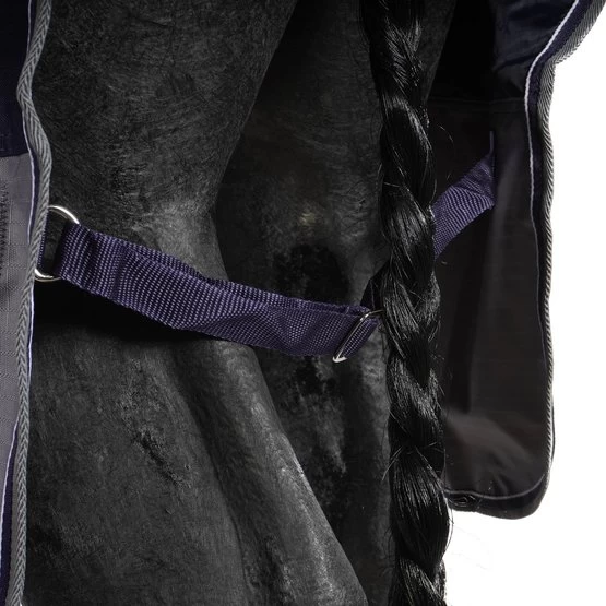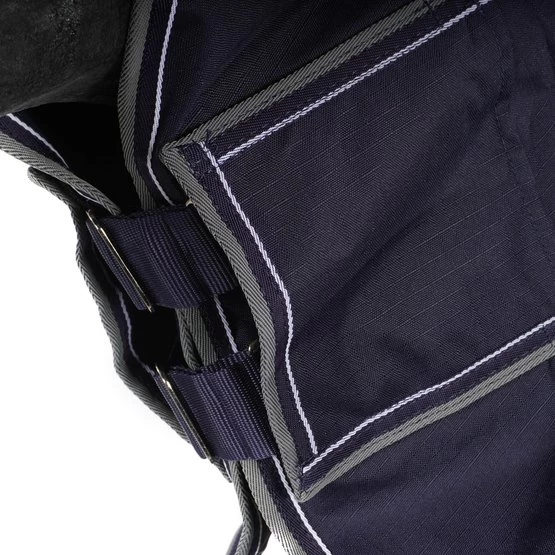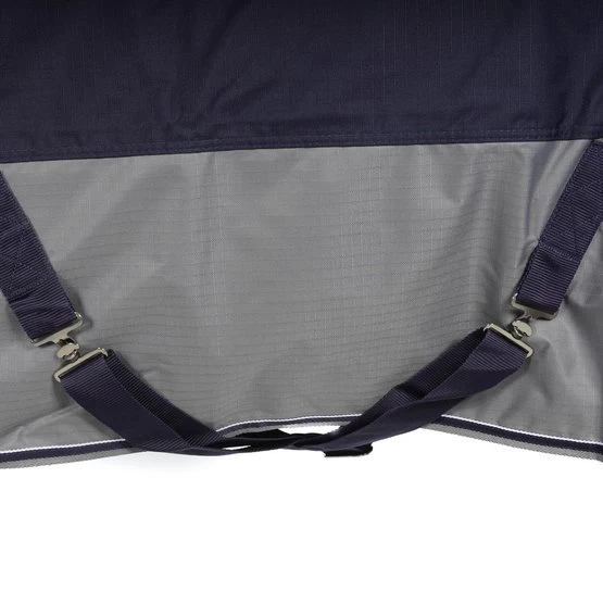 Wasserdichte und atmungsaktive Decke aus 600-Denier-Ripstop-Polyester mit verschweißten Nähten. Kombinierter, mit Nylon gefütterter Kombihals mit 2 verstellbaren Trägern und Metallschnallen, die an beiden Seiten mit Klettverschlüssen gesichert sind. Nylonfutter. Verfügt über eine sehr große wasserdichte Heckklappe, synthetische Schaffellfüllung am Widerrist, niedrige Kreuzgurte und einen verstellbaren Rückengurt. Schnellverschluss auf der Brust, verstärkt mit Klettverschlüssen.
