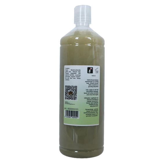 Dieses Shampoo mit Montmorillonit, Rhassoul-Ton und ätherischen Ölen reinigt und entfettet das Fell dank der reinigenden Eigenschaften des Tons, der Unreinheiten absorbiert. Besonders wirksam bei hartnäckigen Flecken. Das Fell wird nach Gebrauch leicht und weich. Montmorillonit-Ton reinigt sanft mit außergewöhnlicher Saugfähigkeit. Rhassoul-Ton wirkt auf die Hygiene der Dermis und des Fells und respektiert die Fettstoffe der Haut. Die ätherischen Öle von Bergamotte, exotischer Verbene, Teebaum verstärken die stärkende, schützende und reinigende Wirkung und tragen zur Geschmeidigkeit des Haares bei. Direkt aus Formulierungen abgeleitet, die in der Humankosmetik verwendet werden, ist dies ein Produkt von höchster Qualität. Rein, natürlich und hochkonzentriert verleiht die Anwendung dem Fell seine antiallergische, desinfizierende und beruhigende Wirkung. Zusammensetzung: Montmorillonit grüner Ton aus Ventoux, Rhassoul beige Ton, Aprikosenkernöl, ätherische Bergamotteöle, exotische Eisenkraut, Teebaum.