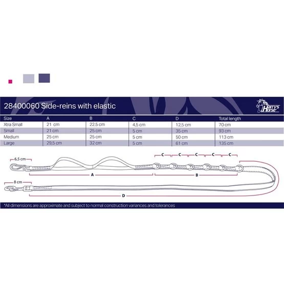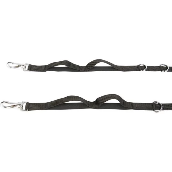 Leicht verstellbare Seitenzügel durch die D-Ringe, zur Verwendung beim Reiten, Longieren oder Handarbeiten, teilweise mit Gummizug gepolstert