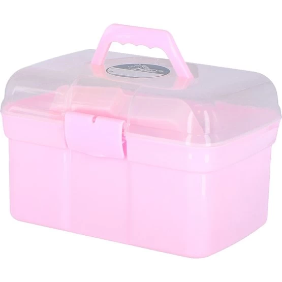 Inhalt: Hufkratzer mit Bürste, Glanzbürste, harte Bürste, Kardätsche mit Glitzer, Schwamm und Mähnekamm