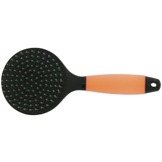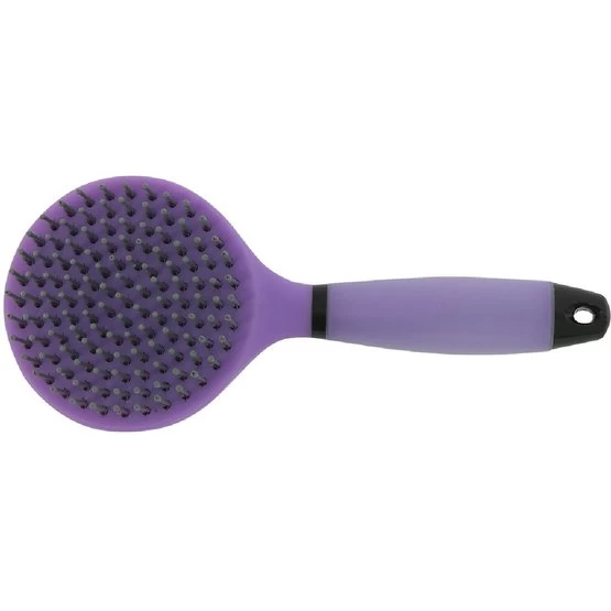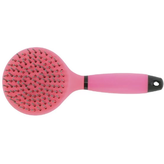Polypropylenbürste mit Nylonborsten für wirkungsvolles Entwirren des Langhaars und Mähnenpflege. Griff aus ABS mit formspeicherndem Gel. Knopf aus ABS mit Aluminiumbeschichtung.