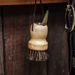 Der Hufkratzer besteht aus lackiertem Gummibaumholz, das eine gute Haltbarkeit aufweist. Die Bürsten des Hufkratzers bestehen aus Polypropylenfasern. Diese sind hart und sehr widerstandsfähig, um Sand leicht zu entfernen. Der Hufkratzer wird auch mit einer kleinen Kordel zum einfachen Aufhängen in Reichweite geliefert.