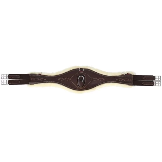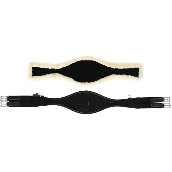 Speziell geformtund entworfen, um der natürlichen Bewegung des Pferdes zu folgen, bietet der Gurt Anatomic mit Schaffell sowohl Komfort als auch Freiheit. Er verschafft den Schultern und Ellbogen des Pferdes Freiheit, so dass es besser atmen kann, während das Risiko von Verletzungen minimiert wird. Der Gurt hat ein schützendes Inneres aus EVA, Elastikeinsätze an beiden Enden, um Druck gleichmäßig zu verteilen, drei D-Ringe, um (Hilfs-)Zügel anzubringen sowie eine Schnalle, um ein Martingal am Gurt zu befestigen. Die Gummizüge sind sehr stabil und bleiben es auch, da es insgesamt drei und diese doppelt gemacht sind. Das künstliche Schaffell bietet eine ausgezeichnete Polsterung für die Haut unddas Kunstleder kann bei 30°Cin der Waschmaschine (kein Trockner) gewaschen werden. Darüber hinaus nimmt das Kunstleder keinen Schmutz, Schweiß oder Wasser auf und ist daher sehr haltbar! Ebenfalls ändert es auch nicht die Farbe und ist nur sehr schwerzu beschädigen.