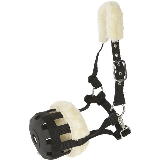 hindert Ihr Pferd vor zu hastigem Fressen auf der Weide • komfortable Ausführung mit Webpelz-Polsterung im Inneren des Korbes, rund um die Nase sowie am Genickriemen • Maulbereich besteht aus robustem, jedoch flexiblem Kunststoff • Genickriemen mit doppeltem Klettverschluss lässt sich schnell lösen • inkl. Ring an der Unterseite des Korbes zum Führen kurzer Strecken – nicht zum Anbinden geeignet • flexibel verstellbar, um die Größe perfekt anzupassen