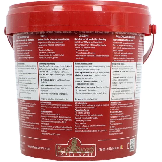 Kevin Bacons Hufverband ist eine Lorbeersalbe zur Pflege und zum Schutz der Pferdehufe. Um die Geschmeidigkeit, Elastizität und das richtige Gleichgewicht der Hufe des Pferdes zu erhalten, müssen sie mit Produkten bester Qualität behandelt werden. Kevin Bacons Hoof Dressing passt perfekt zu dieser Philosophie.