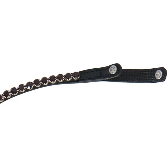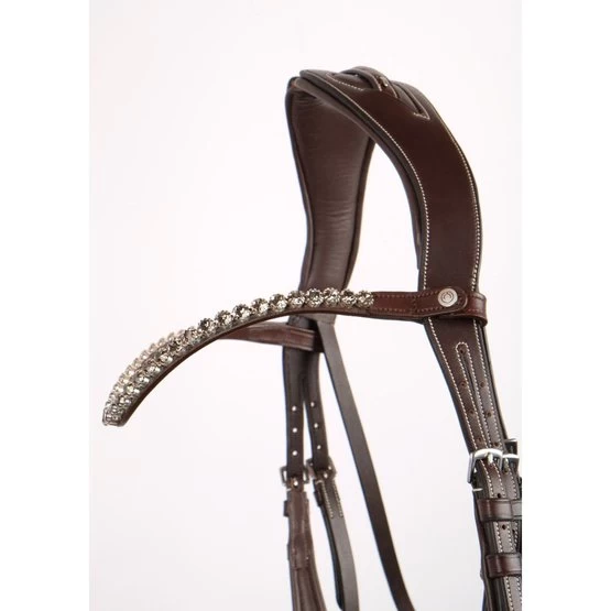Alle Montar-Kristall-Stirnbänder können dank eines Montar-Druckknopfs auf jeder Seite auch während der Trense problemlos gewechselt werden.