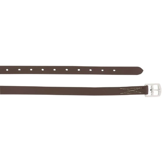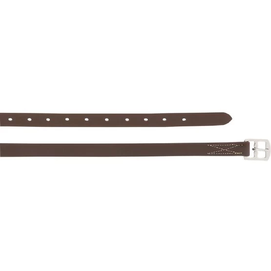 Steigbügelriemen aus Synthetik mit farbigem Nylonfaden verziert. Schnallen aus Edelstahl. Zusammensetzung: PVC.