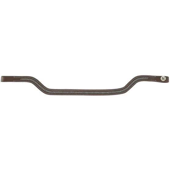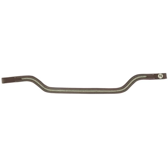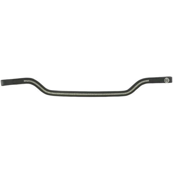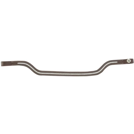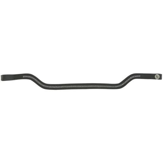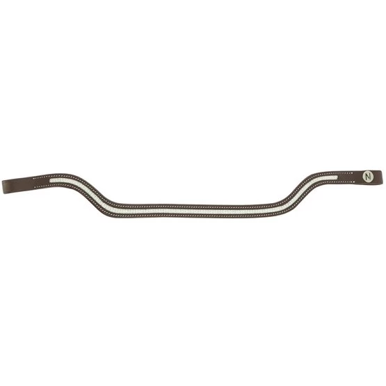 Vorgeformtes Stirnband aus Büffelleder. Schwarze Nähte für das schwarze Leder und weiße Nähte für das Leder von Havanna.