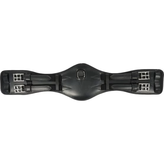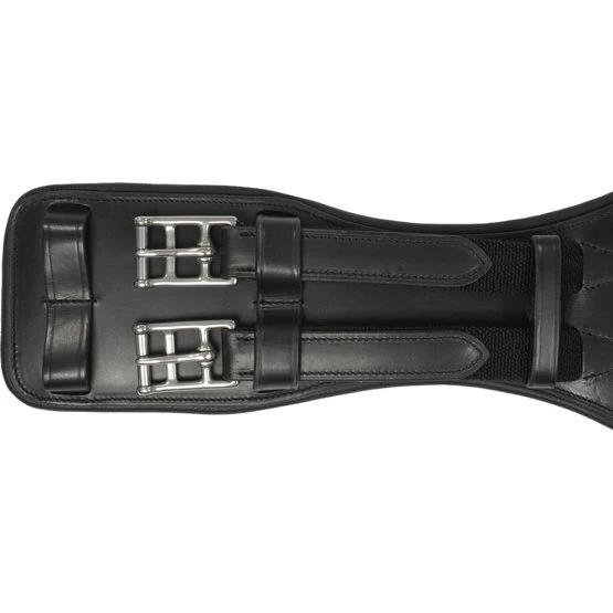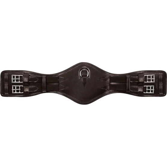 Der geschwungene Sattelgurt aus Leder mit beidseitig elastischen Enden hat in der Mitte einen D-Ring zum Anbringen zusätzlicher Zügel und garantiert optimale Bewegungsfreiheit für das Pferd. Die verbreiterte Riemenmitte sorgt für eine optimale Druckverteilung. Der Sattelgurt hat auf beiden Seiten zwei extra Laschen für eine optimale Umreifung!