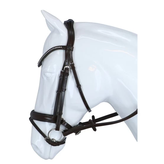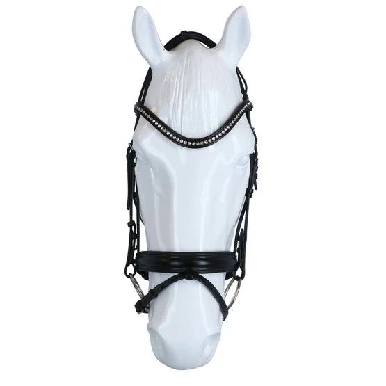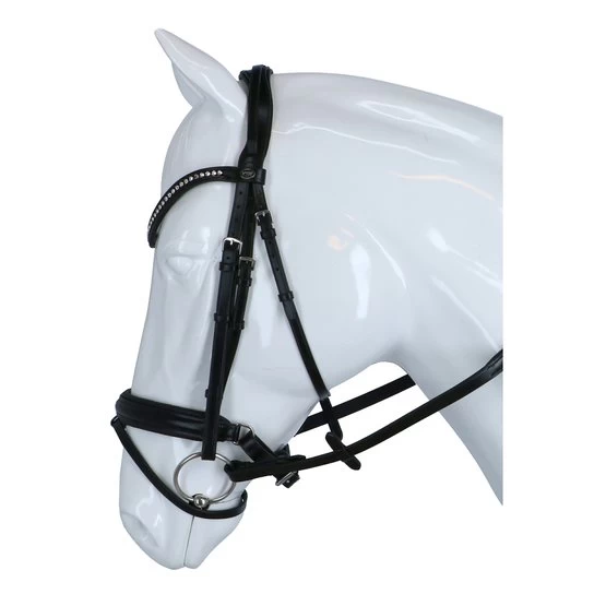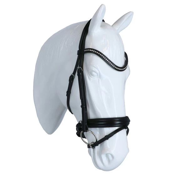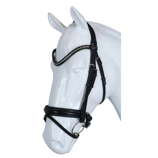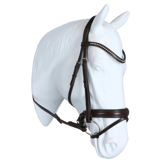 Die Trense wurde mit Ingrid Klimke entwickelt und überzeugt durch ihre ideale Druckentlastung. Als Standard hat sie ein Reithalfter Spezial mit Sperriemen. Den eleganten Stirnriemen gibt es mit Swarovski Elementen! Die Trense wird inkl. Zügeln geliefert.