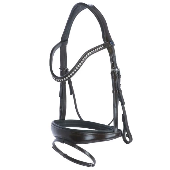 Die funkelnde Trense PASSIERBLU Spirit ist Teil der PASSIERBLU Collection und eines unserer beliebtesten Stücke! Das anatomisch geformte, extra weiche Kopfstück sorgt für eine optimale Druckverteilung auf das Genick des Pferdes. Auch das kombinierte Reithalfter ist anatomisch geformt und weich unterlegt – wunderbar! Das gewellte Stirnband ist mit mittelgroßen Premium-Kristallen in Clear Crystal mit einem brillanten Funkeln ausgestattet, das perfekt zu den Edelstahlbeschlägen passt, oder in Colorado Topaz mit einem goldenen Schimmer, der in Kombination mit Messingbeschlägen wunderschön aussieht. Ein funkelndes und pferdefreundliches Highlight, echt nur mit dem original PASSIERBLU Etikett seitlich am Stirnband.
