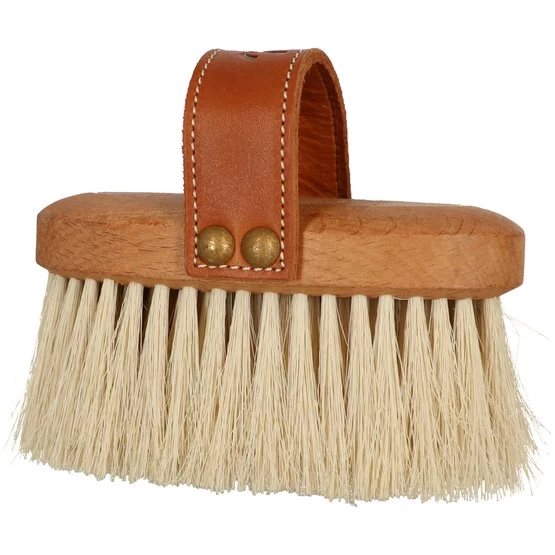 Kleine, weiche Kardätsche. Mit Lederschlaufe und sehr langen und weichen Borsten. Selbst für empfindlichste Pferde und kleine Hände geeignet.