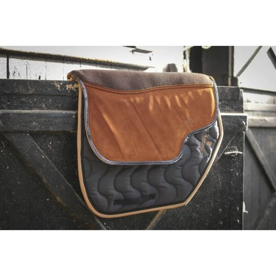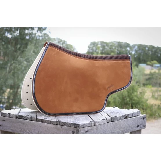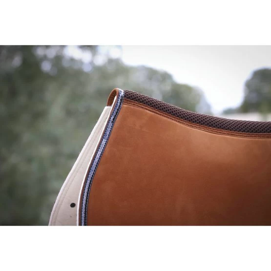 PENELOPE Rückenschoner bestehend aus 3D Mesh, Filz und Leder. Freier Wirbelkanal dank der 3D Mesh Einlagen, Lackleder Point Sellier Paspelierung, freibleibender Widerrist. Mit Leder bezogener Filz für besseren Grip. Nicht waschbar, Made in France.