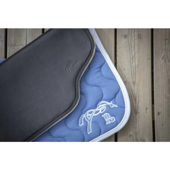 PENELOPE „PRO1“ Rückenschoner aus Leder, Filz und Neopren. Der 2012 in enger Zusammenarbeit zwischen der Reiterin Pénélope Leprevost und der Marke entworfene Rückenschoner aus Leder und Filz PRO1 besteht aus drei Schichten, um eine optimale Stoßdämpfung zu gewährleisten.Die unterste Schicht, die mit der Matte in Berührung kommt, besteht aus hochwertigem, perforiertem Filz. Es ist ein Material, das sich nicht verdichtet und durch seine Lochreihe eine hohe Dämpfungswirkung und Atmungsaktivität aufweist. Die mittlere Schicht besteht aus einer dünnen Neoprenschicht, die den dämpfenden Aspekt betont, indem sie nicht zu viel Dicke hinzufügt. Sie ermöglicht es dem Reiter, sehr nah an seinem Pferd zu bleiben. Diese Neoprenschicht bedeckt den Widerrist nicht, um ihn besser freizugeben. Die obere Schicht besteht aus einem sehr schönen, vollnarbigen Leder mit dem Penelope-Logo, das wie jedes andere Lederstück im Laufe der Zeit verarbeitet und geformt wird. Es ist also ein Produkt, das mehrmals verwendet werden muss, bevor es die Form Ihres Sattels annimmt.Sein Zuschnitt weist keine Nähte unter dem Sattel auf, um Druckstellen zu vermeiden. Der Leder- und Filzdämpfer Pro ist für gemischte Sättel und CSO-Sättel geeignet. Zusammensetzung: Leder, Neopren und Filz. Erhältlich in Schokolade und Schwarz.Größe Pferd für Sättel ab 16,5 Zoll. Pflegehinweis: Um Ihren Stoßdämpfer möglichst lange zu erhalten, empfehlen wir Ihnen, ihn mit Glycerinseife zu reinigen und mit einer kleinen Menge Lederbalsam zu befeuchten.