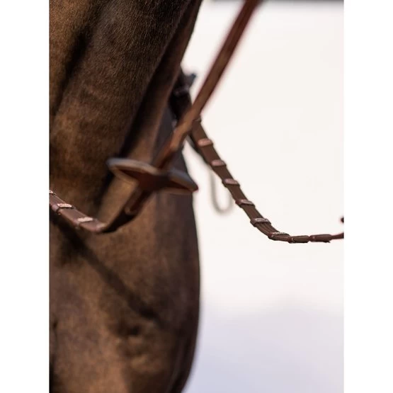 This web rein is slightly wider, with helpful leather stops and elastic Cradles™. The elastic Cradles gives a resilient effect in the horse’s mouth leading to a more pleasant experience and softer contact.
