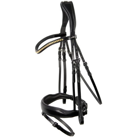 So individuell wie Ihr Pferd: Der Zaum Stanton Select ist Teil der beliebten Select & Mix-Kollektion von Schockemöhle Sports und lässt sich ganz nach Ihren Wünschen kombinieren. Dieses Modell ist vollständig auf die Bedürfnisse von Pferden abgestimmt. Das anatomisch geformte, schlanke Genickstück mit flachen Seitenteilen sowie ein breiter Nasenriemen mit Aussparung für die Wangenknochen verleihen dieser Trense ihr elegantes Aussehen und bieten gleichzeitig ein Höchstmaß an Wohlfühlfaktor für das Pferd. Darüber hinaus ist das Stirnband mit großen orangefarbenen Kristallen ein besonderer Hingucker.