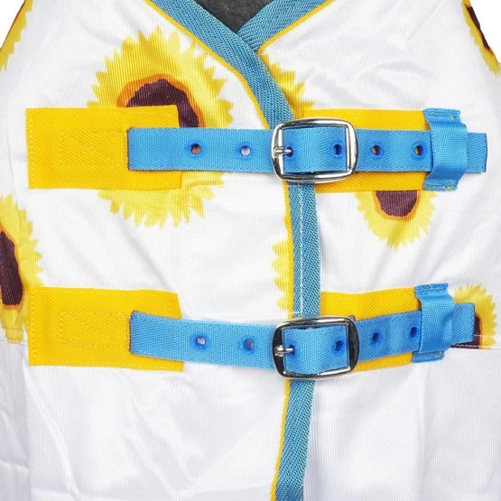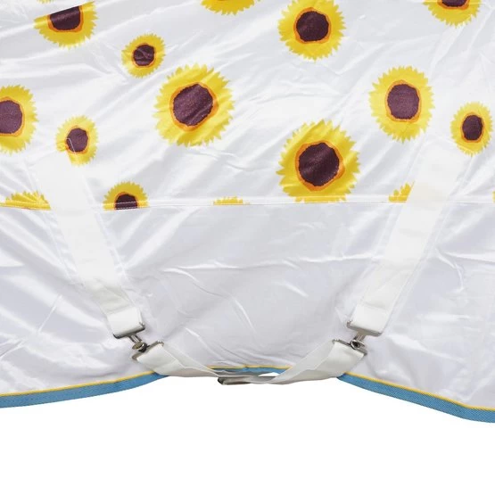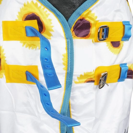 Die Tempest Original Fliegendecke mit Sonnenblumenmuster besteht aus einem eng gestrickten Netzgewebe, das eine Barriere gegen beißende Insekten darstellt und gleichzeitig leicht und luftig bleibt, damit sich das Pferd bei wärmerem Wetter wohlfühlt. Das atmungsaktive Material schützt das Pferd vor Überhitzung und reduziert das Risiko von Sonnenbrand und Sonnenbleiche. Weitere Eigenschaften: 80 % UV-Blockierung*. Ultra-atmungsaktiv. Anti-Sonnenbleiche. Leicht & luftig. Brustgurte mit Schnalle. Verstellbarer Schweifriemen.* Die Wirksamkeit kann mit der Zeit nachlassen. Test durchgeführt gemäß BS EN 13758-1:2002+A1:2006.