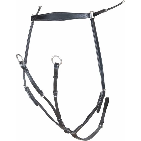 Für eine verbesserte Sattelstabilität lässt sich dieser Brustpanzer leicht an den Sattel-D-Ringen befestigen. Verstellbar an beiden Seiten der Schultern mit Polsterung am Widerrist und an der Brust für mehr Komfort. Verfügt über hochglänzende Edelstahlbeschläge und einen abnehmbaren Martingal. Passt zu allen Zaumzeugen der Velociti-Reihe.