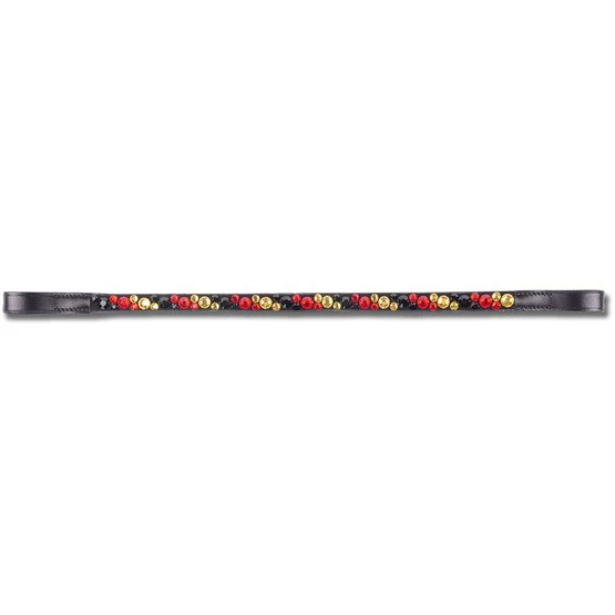 Gerades Stirnband mit großen und kleinen funkelnden Strasssteinen. Nicht unterlegt.