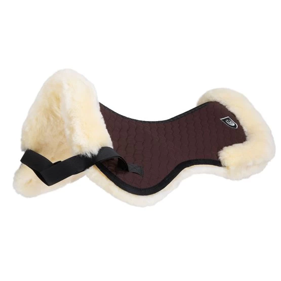 Das Sattelpad Standard ist mit durchgehendem Lammfell auf der Unterseite ausgestattet. Am Widerrist ist das Lammfell um die Kante herumgezogen und schützt an dieser empfindlichen Stelle. Vorne wird das Lammfell bis auf die Oberseite herumgezogen und dient als Sattelanlage. Der hintere Fellrand aus Lammfell fungiert als zusätzlicher Kantenschutz und schmückt optisch.